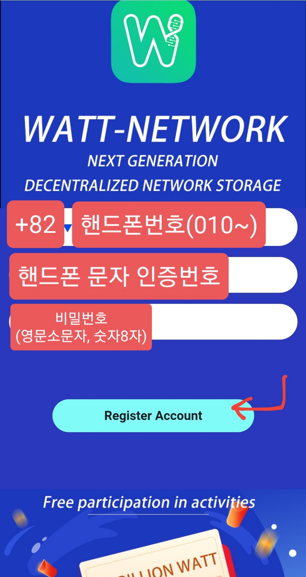 사설이 길었는데 오늘 소개할 극초기 무료 채굴 코인 Watt 가입과 채굴 소개합니다.