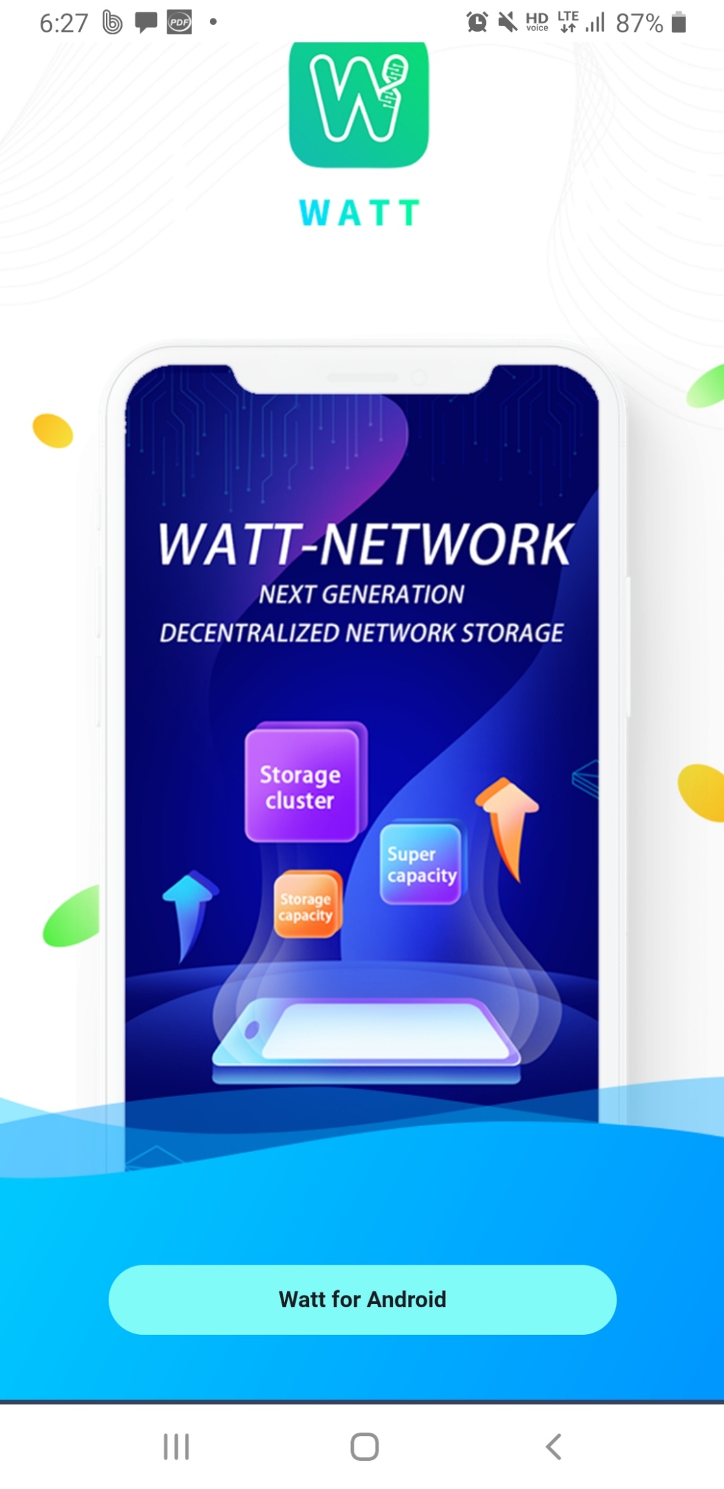 가입이 끝나면 아래와 같은 창이 뜨고 'Watt for Android'를 클릭